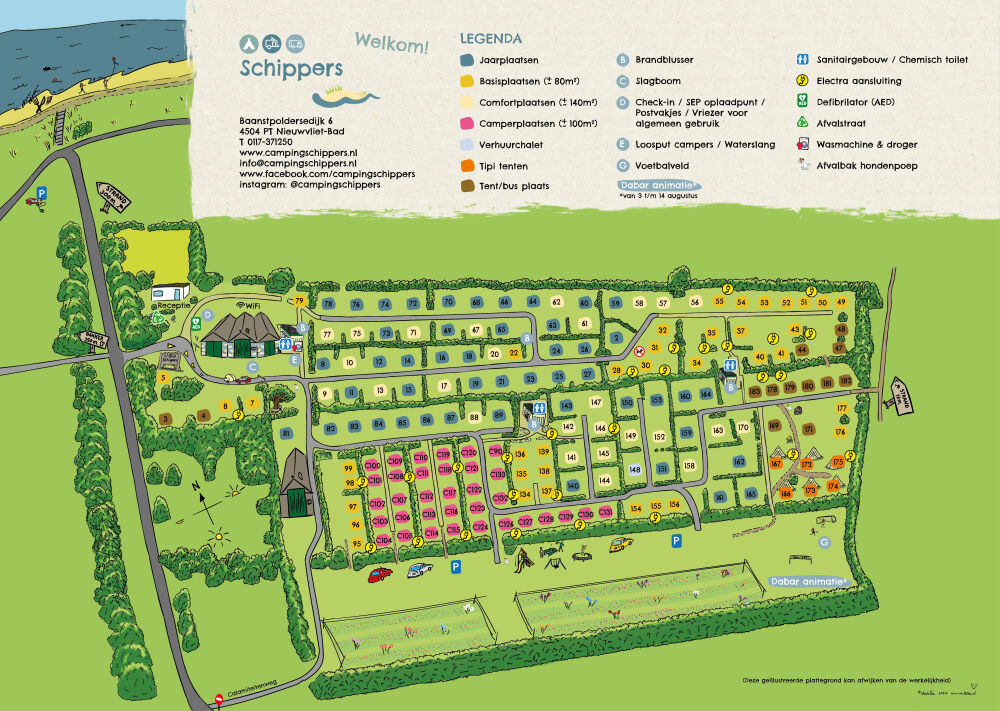 During the high season (July and August) and during and around the holidays, a maximum of two dogs are allowed per pitch. Outside of these periods, a maximum of three dogs are allowed per site.