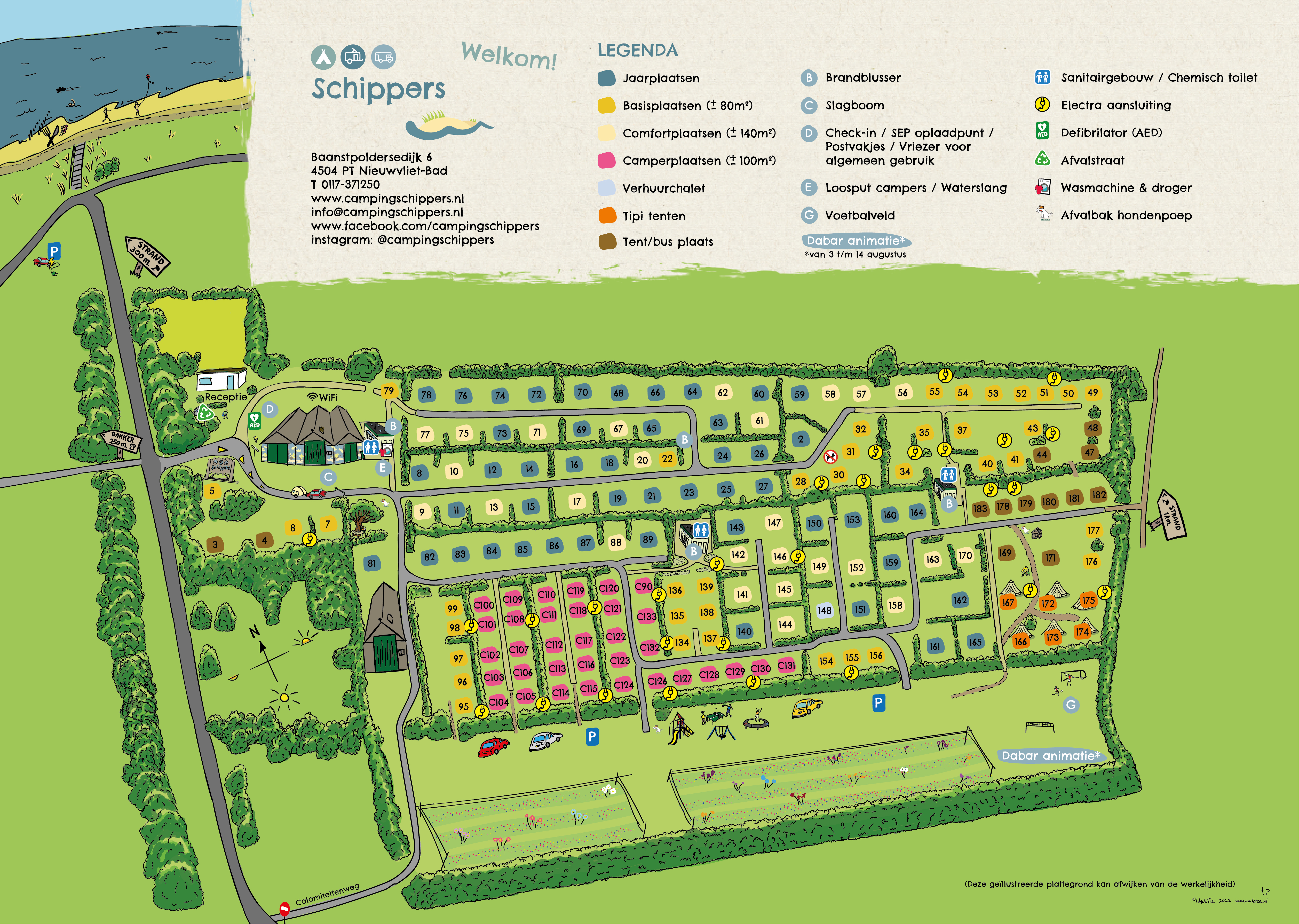 Our campsite is a simple and peaceful base to further explore the region. Of course there is excellent but simple sanitary which you can use freely (5 minutes of shower per person per night included). For motorhome owners, there is a gray water discharge point and free tapping point. The camping doesn't have a bar/restaurant, but you can order online and get your daily fresh bread at Brood&Zo at a 5-minute walk. During the summer holidays, a few food trucks visit our campsite every week. Leave the cooking for an evening and enjoy a fresh pizza from the wood oven, fries or a traditionally made ice cream.